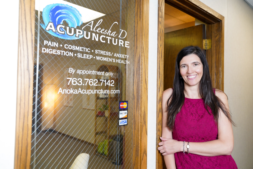 Aleesha D Acupuncture is located in historic downtown Anoka at 229 Jackson Street just off Highway 10 with free parking.